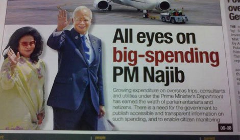 செய்திதாளின் முகப்பில் “அனைவரின் கண்களும் பெரும் செலவாளியான பிரதமர் நஜிப்பின்மீது” என்ற தலைப்பில் வெளியிடப்பட்டிருந்த அக்கட்டுரை, பிரதமரும் அவரின் துணைவியாரும் ஆடம்பரமாக செலவுசெய்வது குறித்து கேள்வி எழுப்பி இருந்தது.
