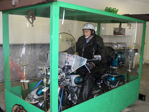 பில் ஸ்டான்ட்லியின் பிரியத்துக்குரிய ‘ஹார்லி டேவிட்சன்’ நிறுவனம் 1967-ம் ஆண்டில் தயாரித்த ‘எலெக்ட்ரா கிலைட்’ மாடல் மோட்டார் சைக்கிளை கண்ணாடி பேழைக்குள் இறக்கி வைத்தனர்.
