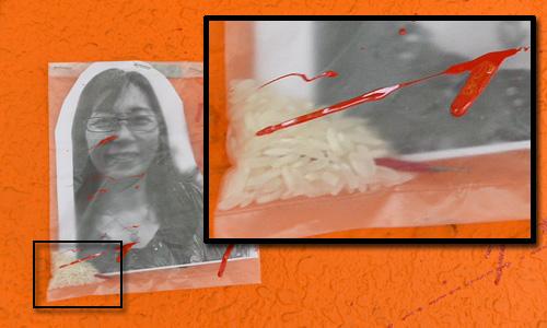 சிவப்புச் சாயம் வீசியடிக்கப்பட்டு ஒரு வாத்தும் விடப்பட்டிருந்தது. அத்துடன் டிஏபி எம்பி, தெரேசா கொக்கின் மூன்று நிழற்படங்கள் தனித்தனி பிளாஸ்டிக் உறைகளுக்குள் வைக்கப்பட்டிருந்தன. அந்த உறைகள் ஒவ்வொன்றிலும் ஒரு பிடி அரிசியும் சிவப்பு நூல் கோக்கப்பட்ட ஊசியும் வைக்கப்பட்டிருந்தன.