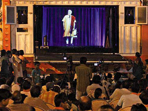 குஜராத்தில் கடந்த 2012ம் ஆண்டு தேர்தலில் 3டி தொழில்நுட்பத்தை பயன்படுத்தி மோடி மேற்கொண்ட பிரசாரத்துக்கு மக்களிடம் பெரும் வரவேற்பு கிடைத்தது குறிப்பிடத்தக்கது.