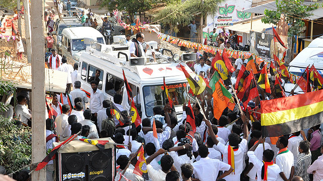 தற்போதைய நிலையில், அ.தி.மு.க. – தி.மு.க., ம.தி.மு.க ஆகிய மூன்று கட்சிகளுக்கு இடையில்தான் யுத்தம் களைகட்டியிருக்கிறது. -BBC