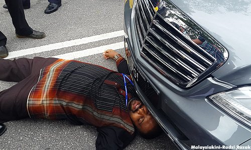 “நான் ஒரு வேட்பாளர். இருந்தும் முதலமைச்சரைச் சந்திப்பதற்கு ஏன் சிரமப்பட வேண்டியிருக்கிறது?”, என்று அபு பக்கார் காரின்முன் குதிக்குமுன் கூறினார்.