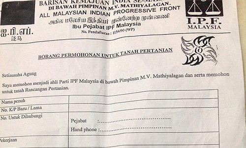 இந்தியர் முன்னேற்ற முன்னணி (ஐபிஎப்)யைச் சேர்ந்தவர்கள் வீடு-வீடாகச் சென்று ஆதரவு திரட்டியபோது அந்த விண்ணப்பப் பாரங்களை வழங்கினார்களாம்.