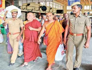 துப்பாக்கி ஏந்திய பொலிசாரும் பணியில் ஈடுபட்டனர். இதுகுறித்து பொலிஸ் அதிகாரி ஒருவர் கூறுகையில்- இலங்கைக்கு எதிராக போராட்டங்கள் நடைபெற்று வருவதால் இலங்கைவாசிகளை பாதுகாக்கும் பொருட்டு பலத்த ஏற்பாடுகளை செய்துள்ளோம். இலங்கைவாசிகளை புத்தமடம் மற்றும் விமான நிலையங்களிலிருந்து அழைத்து வந்து ரெயிலில் ஏற்றி அனுப்பும் வரையிலும் 2 அடுக்கு பாதுகாப்பு ஏற்பாடுகளை செய்திருந்தோம் என்றார். இது மிகவும் சாமர்தியமாகவும் மற்றும் ரகசியமாகவும் நடைபெற்றுள்ளது. இந்த விடையம் தமிழக உணர்வாளர்களுக்கு தெரிந்திருந்தால், சிங்கள புத்தபிக்குகளின் நிலை கவலைக்கிடமாக தான் இருந்திருக்கும். அடி பின்னி எடுத்திருப்பார்கள்.