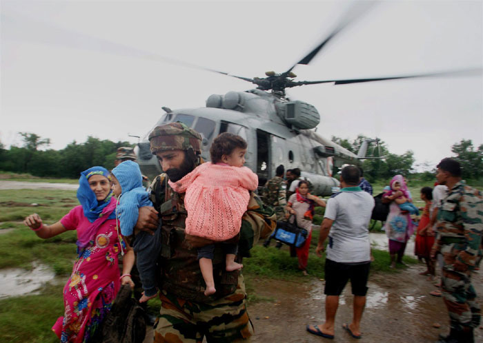 ஸ்ரீநகர்: தங்களது உயிரையும் துச்சமென மதித்து, காஷ்மீரில் இந்திய ராணுவத்தினர் செய்து வரும் மீட்புப்பணிகள் அம்மாநிலத்தில் பெரும் வரவேற்பை பெற்றுள்ளது. இது வரை விரோதிகளாக பார்க்கப்பட்டு வந்த இந்திய ராணுவத்தினர், தற்போது காஷ்மீர் மக்களால் ஹீரோக்களாக பார்க்கப்பட்டு வருகின்றனர்.ஜம்மு காஷ்மீர் மாநிலம் கடந்த 60 ஆண்டுகளில் பார்த்திராத கனமழை மற்றும் வெள்ளத்தால் செய்வதறியாது திகைத்து நிற்கிறது. ஓயாமல் பெய்யும் மழை, காணும் இடங்களில் எல்லாம் வெள்ளக்காடு என மக்கள் பீதியில் உறைந்திருக்க, அவர்களை காப்பாற்ற களம் இறங்கியது இந்திய ராணுவம். இந்திய ராணுவத்தின் தரைப்படை, விமானப்படை, தேசிய பேரிடர் மீட்புக்குழுவினர், கடற்படை இவற்றுடன் துணை ராணுவப்படையினரும் மீட்புப்பணிகளில் களமிறங்கினர். மீட்புப்பணிகளில் தங்களது உயிரையும் பொருட்படுத்தாது இதுவரை ஆயிரக்கணக்கானவர்களை ராணுவத்தினர் மீட்டுள்ளனர். நிலைமை சீரடைந்தால் இதே மக்கள், தங்களை நோக்கி கல் எறிவார்கள் என்று தெரிந்திருந்தும், அதையெல்லாம் மனதில் கொள்ளாமல் மீட்புப்பணியில் இந்திய ராணுவம் ஈடுபட்டுள்ளது.