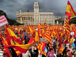 அதனால் அப்பகுதி மக்கள் ஆத்திரம் அடைந்தனர். தங்களுக்கு தனிநாடு வழங்க வேண்டும் என்ற கோரிக்கையை வலியுறுத்தி பார்சிலோனா நகரில் மாபெரும் பேரணியை நடத்தினார்கள்.