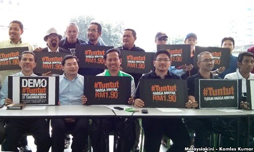 இந்த ஆர்ப்பாட்டத்துக்கு வழிவிடாமல் அதற்கு முன்பாகவே விலைக் குறைப்பை அரசாங்கம் அறிவிக்க வேண்டும். அல்லது விலையைக் குறைக்க முடியாது என்றால் அதற்கான காரணத்தை அரசு மக்களுக்குத் தெரியப்படுத்த வேண்டும். பீப்பாய் ஒன்றுக்கு UD115. விற்ற போது வாங்கிய விலையிலேயே இப்போது பீப்பாய் ஒன்றுக்கு US65. க்கு விற்றால் மக்கள் ஏற்றுக்கொள்வார்களா? ஒரே விலைதான் என்றால் விலை குறைந்தாலும் உயர்ந்தாலும் லிட்டர் ஒன்றுக்கு RM1.50. மட்டுமே என்றாவது ஒரு விலை நிர்ணயம் செய்ய வேண்டும். விலை உயர்ந்தாலும் குறைந்தாலும் அது மக்களுக்கு சாதகமாக இருக்கக்கூடாது என்று அரசு எண்ணினால் எப்படி?