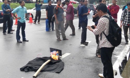 “யுஎம் எண்மர்” மீதான குற்றச்சாட்டுகளைக் கைவிட வேண்டுமென்ற கோரிக்கைக்குப் பல்கலைக்கழகம் மறுமொழி தெரிவிக்காததால் ஆத்திரமடைந்த மலாயாப் பல்கலைக்கழக மாணவர்கள் துணை வேந்தர் ரொஹானா யூசுப்பின் கொடும்பாவியை இன்று எரித்தனர்.