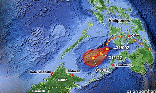 நாளை அது சண்டாகானுக்கு 300கிமீ வடகிழக்கே கலைந்து விடும் என வானிலை முன்னறிவிப்பு ஒன்று கூறுகிறது.