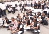 இதில் 10-க்கும் மேற்பட்ட மாணவர்கள் கலந்து கொண்டனர். மற்ற மாணவர்கள் ஆர்ப்பாட்டத்தில் கலந்து கொள்ளாமல் இருக்க கல்லூரி மெயின் கேட்டை ஆசிரியர்கள் இழுத்து பூட்டினர்.