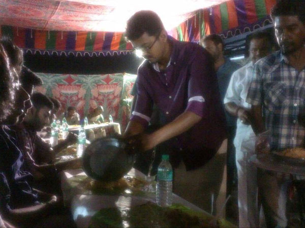 இந்தத் தலை வாழை விருந்தை தனது பணத்தில் தானே வைத்தார், தளபதி! அல்லது தயாரிப்பளார் பணத்திலா!