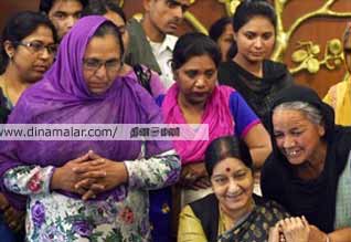 இந்நிலையில் அங்கு வாடும் இந்தியர்களின் குடும்பத்தினர் மத்திய வெளியுறவு துறை அமைச்சர் சுஷ்மாவை சந்தித்து தங்களின் கவலைகளை தெரிவித்தனர். தங்கள் உறவினர்களை மீட்டு பத்திரமாக அழைத்து வர வேண்டிய ஏற்பாடுகளை செய்யுமாறு கேட்டு கொண்டனர். சுஷ்மா அவர்களுக்கு உறுதி அளித்தார்.