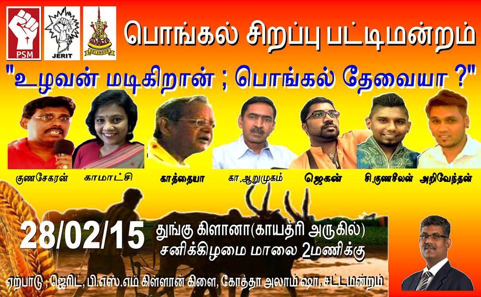 ஐயா கிருஷ்ணசாமி ,நான் ஜோகூர் மாநில பி எஸ் எம் ,கட்சியை சேர்ந்தவன் .மேலே அனைவரும் குறிப்பிடுவதுபோல் , பொங்கல் திருநாளை கொண்டாட வேண்டாம் என்பது பட்டி மன்றத்தின் அடிப்படை நோக்கமல்ல என்பதை அனைவரும் அறியவேண்டும் .பட்டி மன்றத்தின் நோக்கமே விவசாயிகளின் துன்பங்களையும் ,அவர்களுக்கு எதிராக இருந்துவரும் முதலாளித்துவ அநீதிகளையும் ,விவசாயிகளின் மீது இருக்கும் அரசாங்கத்தின் மெத்தன போக்கையும் மக்களிடையே கொண்டு செல்வதுதான் இந்த பட்டி மன்றத்தின் நோக்கம் .