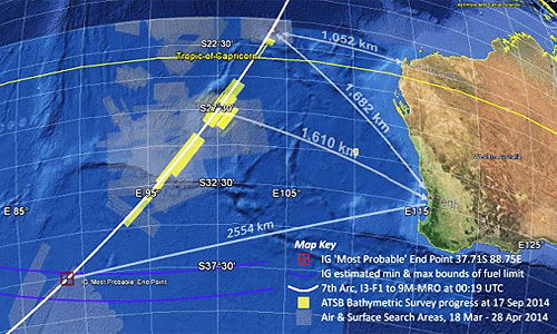 ஆஸ்திரேலியாவின் பெர்த் நகருக்கு 1,600 கிலோமீட்டர் தொலைவில் அதைத் தேடும்பணி இப்போது மேற்கொள்ளப்பட்டு வருகிறது.