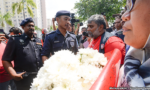 நானும் காலை 11 மணி அளவில் அங்கு சென்றேன் ! மலர் கொத்து கொடுக்க வந்தவர்களை 50 fru போலிஸ் பாதுகாப்பு கொடுத்தது ! சாலை அடைக்கப்பட்டது ,கெளானா ஜெயா போலிஸ் நிலைய வளாகம் பெரிய போலிஸ் வண்டிகள் வருசையாக நிறுத்தப்படிருந்தது ,இன்று காலை உணவுக்கு 20 சென் gst கொடுத்தேன் !