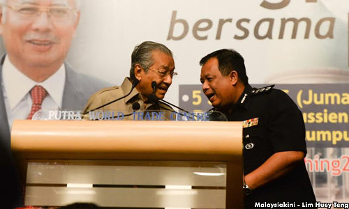அவர்களை அமைதிப்படுத்த மகாதிர் மேடையேறினார். ஆனால், அவர் பேசுவதை போலீசார் தடுத்தனர். இதனால் கூட்டத்தினரின் ஆத்திரம் அதிகரித்தது.