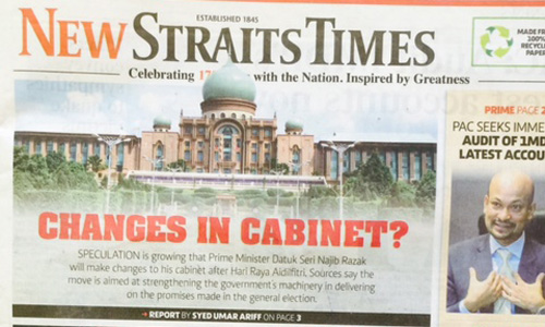 ஹரி ராயாவுக்குப் பின்னர் அமைச்சரவை திருத்தி அமைக்கப்படலாம் என அம்னோ தொடர்புடைய நியு ஸ்ரேய்ட்ஸ் டைம்ஸ், பெயர் குறிப்பிடப்படாத வட்டாரங்களை மேற்கோள்காட்டி அறிவித்துள்ளது.