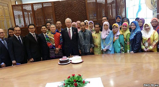 பிரதமரின் அலுவலகம், பிரதமர்துறை அலுவலகப் பணியாளர்கள் நஜிப்புடனும் இரண்டு கேக்குகளுடனும் காட்சியளிக்கும் நிழற்படமொன்றை வெளியிட்டிருந்தது.