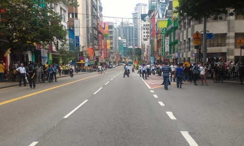 இதனிடையே, போலீசார் துவாங்கு அப்துல் ரஹ்மான் சாலையை மூடியுள்ளனர். அங்கிருந்த பொதுமக்களிடம் உடனடியாக இடத்தைக் காலி செய்யுமாறு கூறப்பட்டது. மீறுவோர் கைது செய்யப்படுவார்கள் என்றும் எச்சரிக்கப்பட்டது.