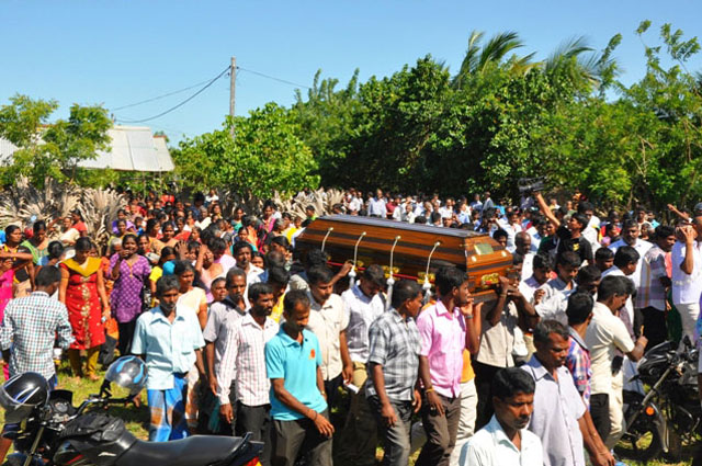 அமரர் தமிழினியின் இறுதி ஊர்வலத்தில் நாடாளுமன்ற உறுப்பினர்கள், மாகாண சபை உறுப்பினர்கள், பிரதேச அரசில் பிரமுகர்கள், சமூக ஆர்வலர்கள், நாட்டுப்பற்றாளர்கள், பாடசாலை சமூகத்தைச் சேர்ந்தவர்கள், ஊடகவியலாளர்கள் எனப் பலரும் பங்கெடுத்துள்ளதாகத் தெரிவிக்கப்படுகின்றது. நுரையீரல் புற்றுநோயால் பாதிக்கப்பட்டிருந்த தமிழினி கடந்த மே மாதம் 15ஆம் திகதி மஹரகமை வைத்தியசாலையில் அனுமதிக்கப்பட்டு, சிகிச்சை பலனின்றி நேற்று முன்தினம் உயிரிழந்தார்.