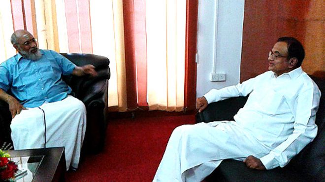 தனிப்பட்ட விஜயம் ஒன்றை மேற்கொண்டு கொழும்புக்கு வருகை தந்திருந்த சிதம்பரம், புதனன்று யாழ்ப்பாணத்திற்குச் சென்று வடமாகாண முதலமைச்சர் விக்னேஸ்வரனைச் சந்தித்துப் பேசியுள்ளார்.