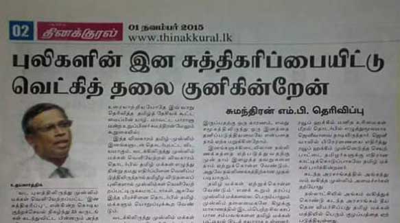 இந்த கசப்பான அனுபவங்களை நாம் மறந்து. கடந்த காலத்தை சற்று ஒதுக்கிவைத்து புது வாழ்க்கையை ஆரம்பிக்க நினைக்கும் வேளையில் , புலிகள் இன சுத்திகரிப்பை செய்ததாக இந்த தமிழ் தேவாங்கு சொல்கிறது. இதனை எங்கே போய் சொல்ல ? இவன் எல்லாம் தமிழன் தானா ? தெரியவில்லை ? இவன் யாருக்கு தலைவனாக உள்ளான் என்று தெரியவில்லை.