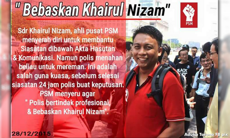 கைருல் நிஜாம், நேற்று தேச நிந்தனைச் சட்டத்தின்கீழும் தொடர்பு, பல்லூடகச் சட்டத்தின்கீழும் கைது செய்யப்பட்டார்.