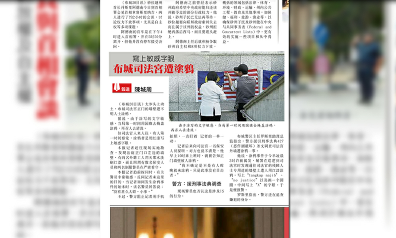 புத்ரா ஜெயாவில் நீதி மாளிகையின் தலைவாசலுக்கு அருகில் உள்ள சுவர்களில் “Tangkap Najib” (நஜிப்பைக் கைது செய்), “No Justice” (நீதி கிடையாது) என்று சிவப்பு வண்ணத்தில் எழுதப்பட்டிருந்தது.