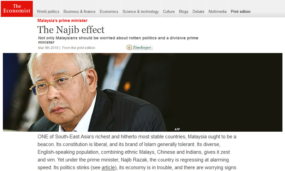 பிரதமர் நஜிப் அப்துல் ரசாக்கின் பாணியில் ஆட்சி நடக்கும் வரையில் உலகில் அதற்கு உரிய அங்கீகாரம் மலேசியாவுக்குக் கிடைக்கப்போவதில்லை என உலகப் புகழ்பெற்ற வாராந்திர சஞ்சிகையான தி எக்கோனமிஸ்ட் கூறுகிறது.
