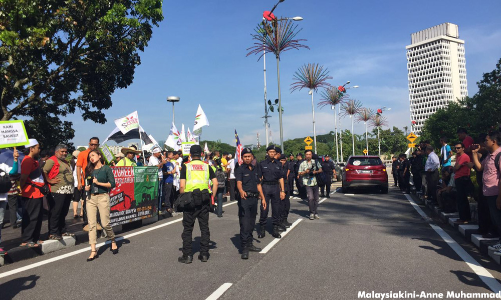 பகாங், பெர்செராவிலிருந்து பாக்சைட்- எதிர்ப்பாளர்கள் 30பேர் அம்மாநிலத்தில் தூய்மைக்கேட்டுக்கு எதிர்ப்புக்குத் தெரிவிக்க 17-நாள் 340 கிலோ மீட்டர் நடந்தே வந்து இன்று நாடாளுமன்றம் சேர்ந்தனர்.