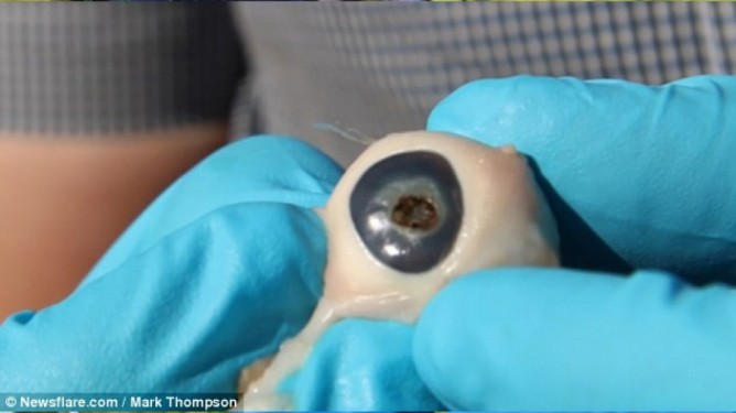 இதற்காக பன்றியின் கண் ஒன்றினை தெரிவு செய்து தொலைநோக்கியின் ஊடாக சூரியனை நோக்கி வைக்கின்றனர்.