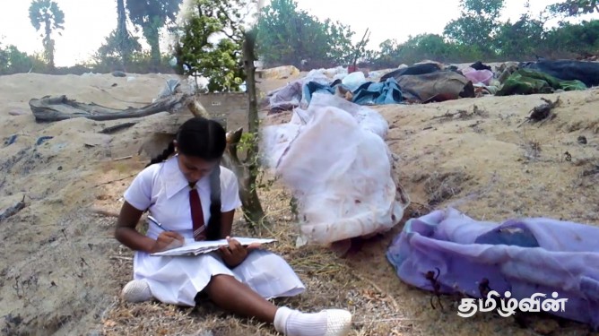முல்லைத்தீவு மாத்தளன் பகுதியில் யுத்ததினால் கொல்லப்பட்ட தனது உறவினர்களுக்கும், பொது மக்களுக்கும் அஞ்சலி செலுத்திய மாணவி ஒருவர், பாடசாலை சீருடையுடன் முள்ளிவாக்கால் சென்று யுத்தத்தினால் கொல்லப்பட்ட மாணவர்களுக்கும் அஞ்சலி செலுத்தியுள்ளார்.