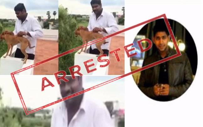 இதனையடுத்து நடைபெற்ற விசாரணையில் மாடியில் இருந்து நாயை தூக்கி வீசியவர் திருநெல்வேலியைச் சேர்ந்த கவுதம்சுதர்சன் (வயது 22) என்றும், அந்தக்காட்சியை செல்போனில் படம் பிடித்தவர் அவரது நண்பர் ஆசிஸ்பால் என்பதும் தெரியவந்தது.