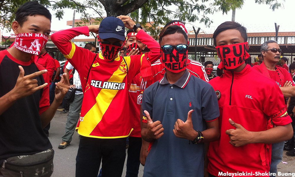 அவர்கள் அவ்வப்போது “tutup Malaysiakini (மலேசியாகினியை மூடுங்கள்)” “hancur Malaysiakini (மலேசியாகினியை ஒழிப்போம்)” என முழக்கமிட்டார்கள்.