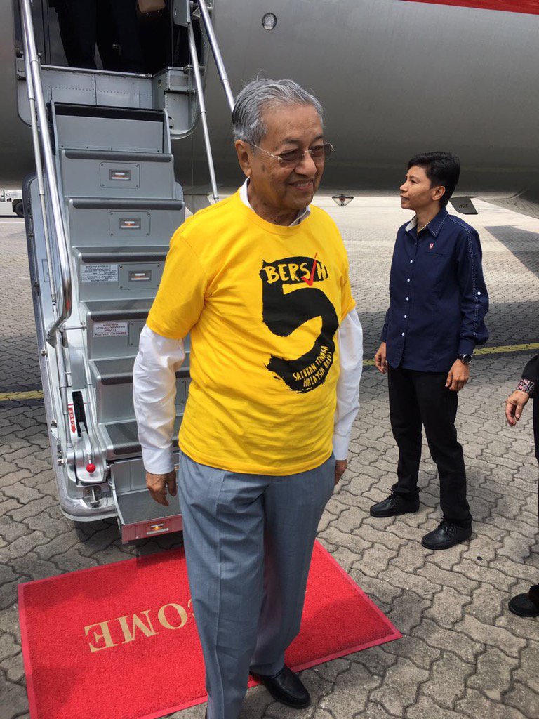 மகாதிர் பெர்சே டி-சட்டை அணிந்து விமானத்திலிருந்து இறங்கும் படமொன்றை வலைப்பதிவாளர் பிர்டுஸ் அப்துல்லா பகிர்ந்து கொண்டிருக்கிறார்.