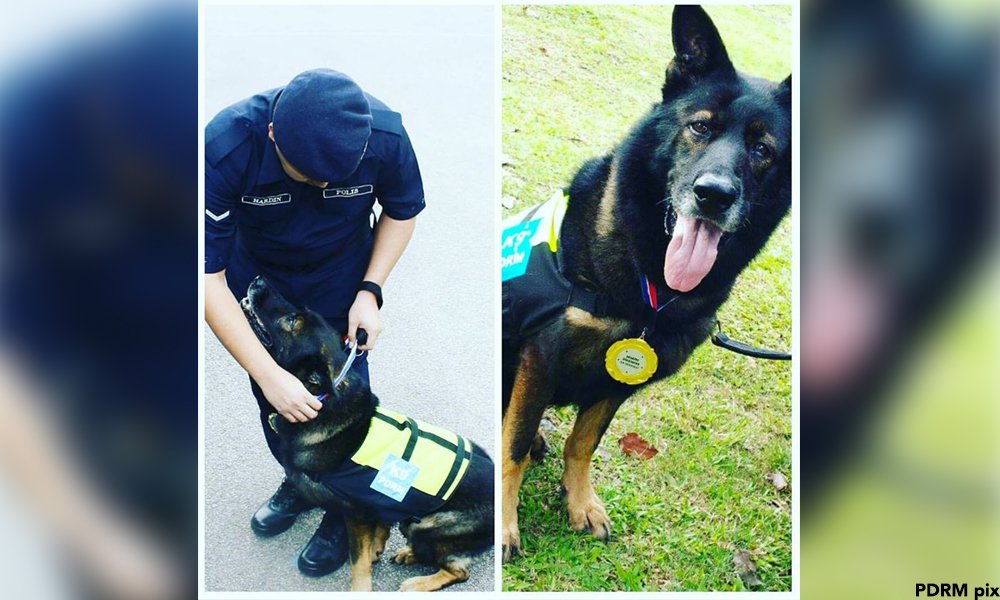 செகாமாட் மாவட்ட போலீஸ் தலைமையகத்தைச் சேர்ந்த எட்டு-வயது மோப்ப நாய்க்கும் அதன் பயிற்றுநரான லான்ஸ் கார்ப்பரல் ஹாடின் இங் காங்கும் பாராட்டுப் பதக்கங்கள் வழங்கப்பட்டிருப்பதாக பிடிஆர்எம் முகநூல் பக்கத்தில் ஒரு செய்தி காணப்படுகிறது.