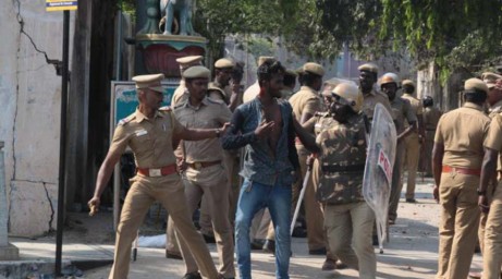 மக்களுக்கு ஆதரவு தெரிவித்தவாறே அவர்களை நோக்கி சென்ற போலீஸார், போராட்டக்காரர்களை சுற்றி வளைத்தனர்.