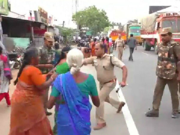 திருப்பூர் சாமளாபுரத்தில் பொதுமக்கள் டாஸ்மாக் கடைகளை திறக்கக் கூடாது என்று நேற்று தொடர்ந்து 7 மணி நேரம் போராட்டத்தை நடத்தினார்கள். போராட்டத்தை கைவிட வேண்டும் என்ற நோக்கத்தில் போலீஸார் அவர்கள் மீது தடியடி நடத்தினர். இதில் ஏடிஎஸ்பி பாண்டியராஜன் பெண் ஒருவரை கன்னத்தில் ஓங்கி அறைந்தார். மேலும் போலீஸ் தடியடியில் இளைஞர் ஒருவருக்கு மண்டை உடைந்தது.