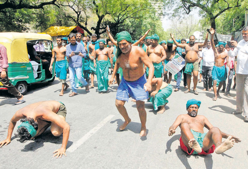 அதன்படி விவசாயிகள் போராட்டம் நடத்தி வரும் ஜந்தர் மந்தர் ரோட்டில் குட்டிக்கரணம் போட்டு நூதன போராட்டத்தில் நேற்று ஈடுபட்டனர். போராட்ட இடத்தில் இருந்து சுமார் 100 மீட்டர் தொலைவில் உள்ள கேரள இல்லம் வரை அவர்கள் குட்டிக்கரணம் போட்டபடி சென்றனர். கொளுத்தும் வெயிலில் அவர்கள் கோஷம் எழுப்பியவாறு குட்டிக்கரணம் போட்டு சென்றது டெல்லி வாழ் மக்களின் கவனத்தை ஈர்த்தது.
