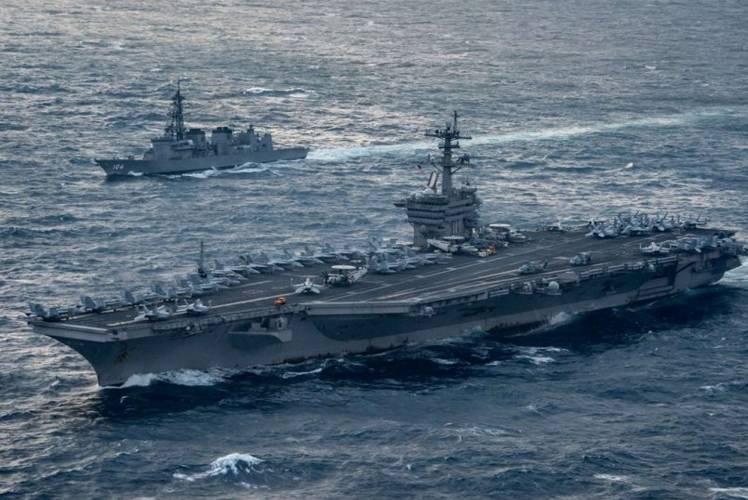 வடகொரியாவின் மிரட்டலுக்கு பதிலடி கொடுக்கும் விதமாக ஜப்பானின் ‘இஸூமோ’ போர்க்கப்பல் அனுப்பப்பட்டு அமெரிக்க போர்க்கப்பல்களுக்கு ஆதரவாகவும், எரிபொருள் அளிப்பதற்காகவும் பயன்படுத்தப்படுகிறது.