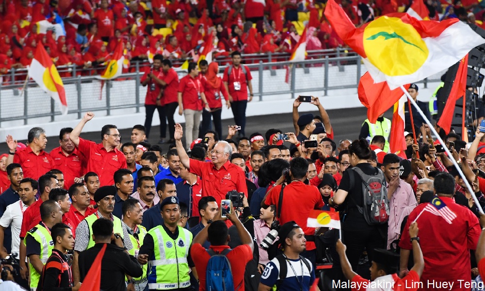 கடந்த 12மாதங்களில் நடந்தேறிய மிகப் பெரிய பேரணி என்றால் அது நேற்றைய அம்னோ பேரணிதான். அம்னோவின் வலிமையைக் காண்பிக்கும் முகமாக 80ஆயிரம் ஆதரவாளர்கள் புக்கிட் ஜலில் தேசிய விளையாட்டரங்கில் கூடியிருந்தனர்.