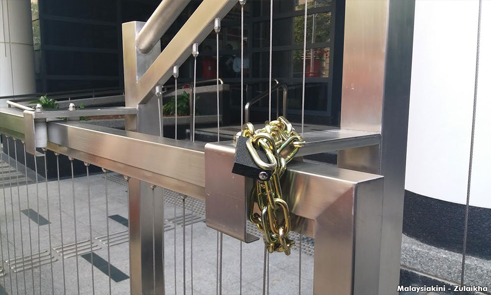பக்கத்தான் ஹராபான் இளைஞர், மகளிர் அணிகள் ஒரு மகஜர் கொடுப்பதற்காக தேர்தல் ஆணைய(இசி)த் தலைமையகம் சென்றனர். இசி அதிகாரிகள் மகஜரைப் பெற்றுக்கொள்ள மறுத்ததை அடுத்து அவர்கள் இசி கட்டிடத்தின் வெளிவாயில் கதவுகளைச் சங்கிலி கொண்டு பூட்டினர்.