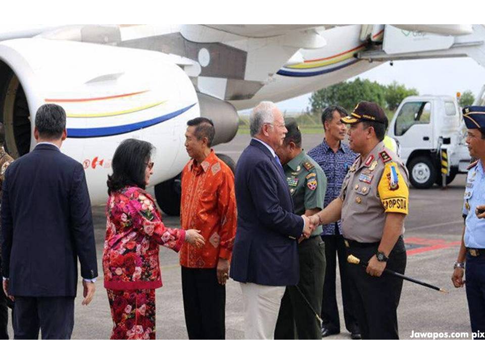 ஜாவாபோஸ்ட்.கோம் வெளியிட்ட செய்தியின்படி, பிரதமரும் அவர்தம் குழுவினரும் ஜூன் 26-ல், 9எம்-என்.ஏ.ஏ. பதிவு எண் கொண்ட விமானத்தில் பாலியை வந்தடைந்ததாக தெரிகிறது. மலேசிய அரசாங்கத்துக்குச் சொந்தமான இவ்விமானம், முக்கியப் பிரமுகர்களின் பயன்பாட்டிற்கானது என்பது குறிப்பிடத்தக்கது.