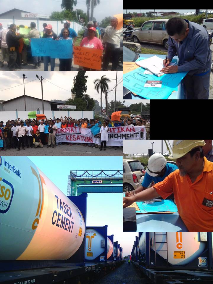 முறையான காரணங்கள் ஏதும் கூறாமல், தொழிலாளர்களைப் பணி நீக்கம் செய்த, தாசேக் சிமெண்டு பெர்ஹாட் (தி.சி.பி.) குழுமத்திற்கு எதிராக, தீபகற்ப மலேசியா சிமெண்டு தொழிற்சாலை தொழிலாளர் சங்க (கே.பி.பி.பி.எஸ்.) , தாசேக் கிளையினர் உதவியுடன் தொழிலாளர்கள் இன்று காலை ஒரு மறியலில் இறங்கினர்.