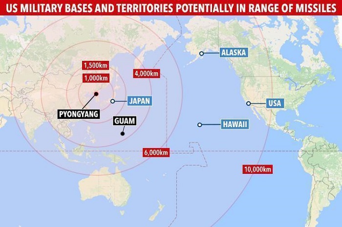 வட கொரியா கண்டம் விட்டு கண்டம் பாயும் பலஸ்டிக் ஏவுகணைகள் பலவற்றை சோதனை செய்து வருகிறது. இவை சுமார் 10,000 மைல்கள் வரை சென்று துல்லியமாக தாக்கவல்லவை. இதனால் கடும் சீற்றமடைந்துள்ள அமெரிக்கா வட கொரியா மீது போர் தொடுக்க ரகசியமாக முடிவுசெய்துள்ளது. இருப்பினும் எப்படி தாக்குவது என்பது போன்ற விடையங்களை தீவிரமாக ஆராய்ந்து வருகிறது. இதேவேளை அமெரிக்கா பல நாடுகளிலும், சிறிய தீவுகளிலும் தனது படைகளை நிலை நிறுத்திவைத்துள்ளது. இது பல வருடங்களாக இருக்கும் ராணுவ தளங்கள் ஆகும். ஆனால் தற்போது வட கொரியாவின் இந்த ஏவுகணைகள் குறித்த ராணுவ நிலைகள், இருக்கும் இடம் நோக்கி சென்று தாக்க வல்லவையாக உள்ளது. குறிப்பாக குவாம் தீவில் உள்ள அமெரிக்க ராணுவ நிலைகளில் 6,000 அமெரிக்க துருப்புகள் உள்ளார்கள்.