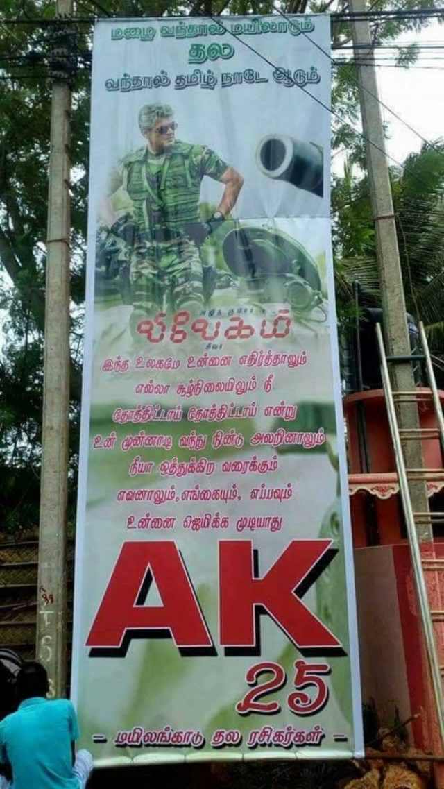 வெளிவர உள்ள அஜித்தின் விவேகம் படத்திற்கு, அவரது ரசிகர்கள் பல கொண்டாட்டத்தில் ஈடு பட்டு வருகிறார்கள். தவறில்லை. ஆனால் யாழில் ஒரு தறுதலை, அவர் விவேகம் படத்தில் ஒருக்கும் ஒரு போஸ்டரை காப்பி அடித்து. அதில் மேலதிகமாக சற்று வரிப் புலில் கோடுகளைப் போட்டு. ஏதோ தேசிய தலைவர் பிரபாகரன் அவர்கள் போல அதனை சித்தரித்து போஸ்டர் அடித்து தொங்க விட்டுள்ளார். போதாக்குறைக்கு “பஞ்ச் டயலக்” வேறு.