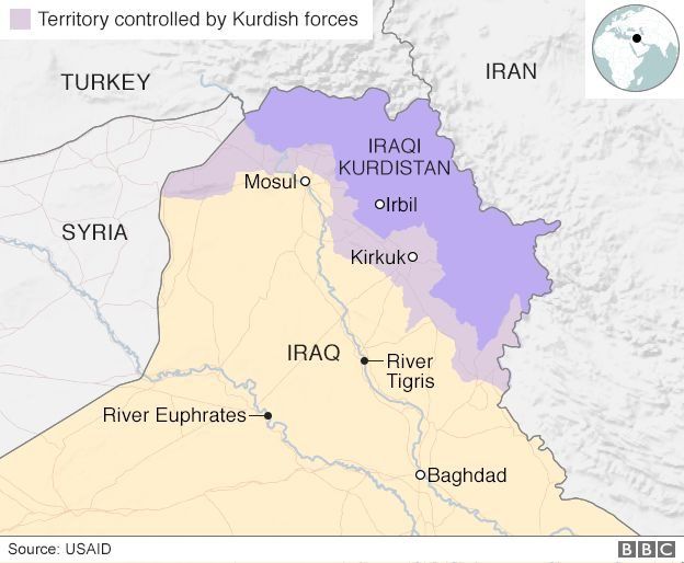 இராக்கில் அவர்கள் 15-20 சதவீதம் உள்ளனர். 1991ல் தன்னாட்சிப் பகுதி கிடைக்கும்வரை, குர்துக்கள் இராக்கில் பல பத்தாண்டுகளாக ஒடுக்குமுறைகளை அனுபவித்தனர். -BBC_Tamil