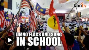 அத்தொடக்கப்பள்ளியின் வளாகம் முழுவதும் அம்னோ கொடிகளால் அலங்கரிக்கப்பட்டிருந்தது. மாணவர்கள் அம்னோ கொடிகளை உயர்த்திக்காட்டிக் கொண்டு கட்சியின் பாடலை பாடிக்கொண்டிருந்தனர்.