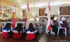 நேற்று புத்ரா ஜெயா பள்ளி ஒன்றில் மாணவர்கள் ஹிடுப் அம்னோ(அம்னோ வாழ்க’ ) என முழக்கமிட்டதுடன் கட்சிக் கொடியை அசைத்து கட்சிப் பாடலையும் பாடினார்கள்.