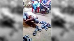 இதையடுத்து, கிராம பஞ்சாயத்துக் கூட்டப்பட்டது. பஞ்சாயத்தில் மகேஷ் தாக்கூருக்கு காலணிகளை வாயால் சுத்தப்படுத்த வேண்டுமென விநோதத் தண்டனை வழங்கப்பட்டது.